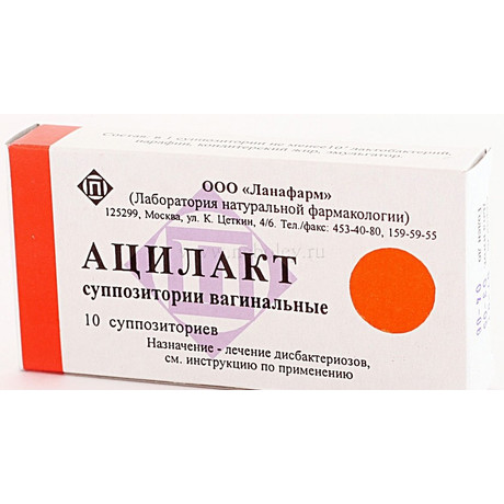 Ацилакт назначают по 1 суппозиторию 2 раза в сутки в течение 5-10 дней.