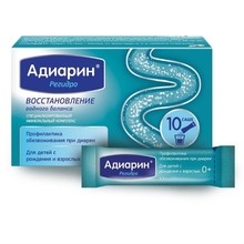 Адиарин® Регидро — препарат для профилактики обезвоживания и быстрого восполнения потерь воды и электролитов при диарее. Благодаря содержанию цинка (Zn) Адиарин® Регидро сокращает продолжительность диареи.