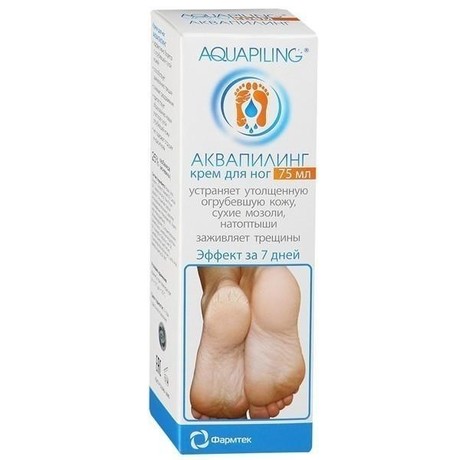 АКВАПИЛИНГ крем содержит мощный кератолитик карбамид (мочевина) в концентрации 25%. Карбамид является признанным средством для устранения гиперкератоза и абсолютно безопасен для здоровой кожи. Карбамид проникает глубоко в толщу огрубевшей кожи и ослабляет связи между слоями клеток.