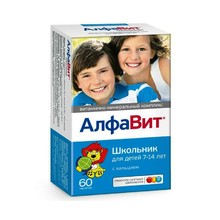 АЛФАВИТ Школьник содержит 11 витаминов и 7 минералов. Дозировки соответствуют нормам потребления полезных веществ детьми старше 7 лет, принятым в РФ.