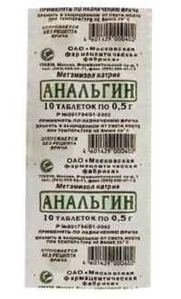 действующее вещество: метамизол натрия (анальгин) 500 мг