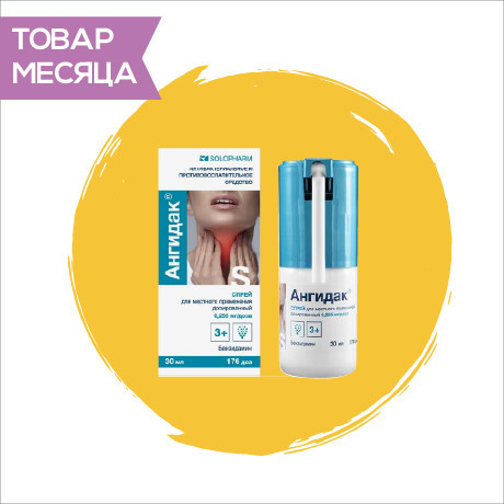 | Ангидак® | Спрей д/местн. прим. дозированный 0.255 мг/1 доза: фл. 15 мл (80 доз), 20 мл (115 доз), 30 мл (176 доз) или 40 мл (230 доз) рег. №: ЛП-№(000540)-(РГ-RU) от 01.02.22 *- Действующее* Предыдущий рег. №: ЛП-004705 |