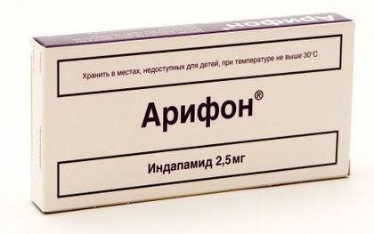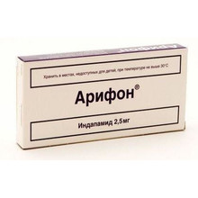 Арифон - Антигипертензивный (диуретический) препарат, производное сульфонамида, содержащее индольное кольцо. По фармакологическим свойствам индапамид близок к тиазидным диуретикам, действие которых связано с ингибированием обратной абсорбции ионов натрия в кортикальном сегменте петли нефрона. Индапамид увеличивает выделение с мочой ионов натрия, хлора и, в меньшей степени, ионов калия и магния, что сопровождается усилением диуреза. Индапамид оказывает антигипертензивное действие в дозах, не обладающих выраженным диуретическим эффектом. Кроме того, гипотензивное действие связано со способностью препарата повышать эластичность стенок артерий и снижать ОПСС.