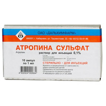 | Атропина сульфат | Р-р д/инъекц. 0.1% (1 мг/1 мл): амп. 5 или 10 шт. рег. №: Р N002652/01 от 21.04.08 *- Бессрочно* Дата перерегистрации: 25.01.18 |