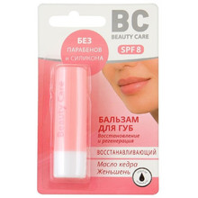 Другие формы «Бальзам для губ BC»Восстанавливающий бальзам + Антивозрастной уход. Обновляет кожу, борется с возрастными изменениями и простудой на губах тажное кедровое масло. Предупреждает раннее старение и защищает от обезвоживания экстракт корня женьшеня.