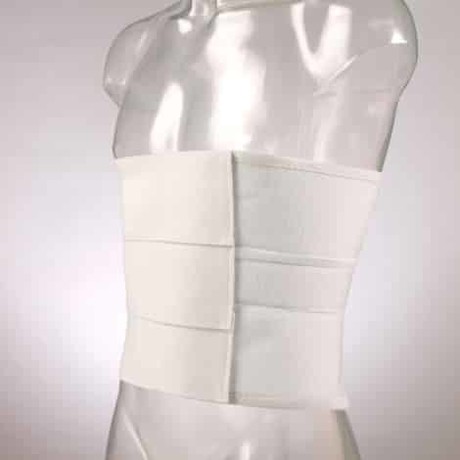 Ортез выполнен из медицинского эластика. Бандаж имеет специальные панели, снабженные специальными застежками «велкро». Панели обеспечивают простоту и комфорт при одевании бандажа. Данная особенность позволяет применять изделие для пожилых людей, людей, страдающих излишним весом, ослабленным после операций людям. Высоту пояса выбирают в зависимости от размеров послеоперационной раны и роста человека. Пояс должен полностью перекрывать послеоперационную рану.