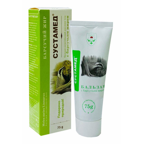 Другие формы «Сустамед биобальзам на барсучьем жире»Барсучий жир – основной компонент бальзама «Сустамед». Его целебные свойства издавна известны и широко применяются в народной медицине. На фоне стойкого разогревающего эффекта, бальзам «Сустамед» быстро снимает болевые симптомы в мышцах и суставах. Барсучий жир обогащает ткани витаминами А, В2, В5, В6, В12, R, K, РР, каротином, токоферолом, фолиевой кислотой, микро- и макро-элементами, органическими кислотами, питает их на клеточном уровне и ускоряет процессы регенерации.