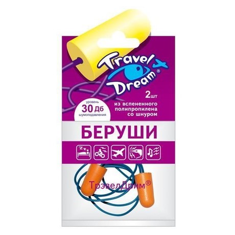 Другие формы «Беруши ТрэвелДрим »Travel Dream беруши прекрасное средство для защиты от громких звуков, шума, воды и храпа. * обладают высокой степенью износоустойчивости; * быстро восстанавливаются, принимают первоначальную форму и сохраняют ее даже при длительном и частом использовании; * обеспечивают высокий уровень комфорта — легко принимают форму, которая полностью соответствует индивидуальным анатомическим особенностям ушного канала. ### Основные характеристики Предназначены для усиленной защиты от шума. ### Комплектация 2 шт.