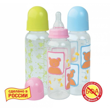 Бутылочка произведена из полипропилена — термостойкого небьющегося пластика, не вступающего в химическую реакцию с молоком и не выделяющего вредных веществ при стерилизации.