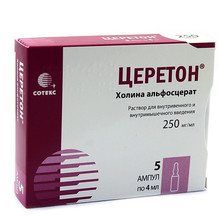 Церетон - ноотропное средство. Центральный холиностимулятор, в составе которого содержится 40,5% метаболически защищенного холина. Метаболическая защита способствует выделению холина в головном мозге. Обеспечивает синтез ацетилхолина и фосфатидилхолина в нейрональных мембранах, улучшает кровоток и усиливает метаболические процессы в центральной нервной системе, активирует ретикулярную формацию. Увеличивает линейную скорость кровотока на стороне, травматического поражения мозга, способствует нормализации пространственно-временных характеристик: спонтанной биоэлектрической активности мозга, регрессу очаговых неврологических симптомов и восстановлению сознания; оказывает положительное влияние на познавательные и поведенческие реакции больных с сосудистыми заболеваниями головного мозга (дисциркуляторной энцефалопатией и остаточными явлениями нарушения мозгового кровообращения). Оказывает профилактическое и корригирующее действие на патогенетические факторы инволюционного психоорганического синдрома, изменяет фосфолипидный состав мембран нейронов: участвует в синтезе фосфатидилхолина (мембранного фосфолипида), улучшает пластичность нейрональных мембран. Стимулирует дозозависимое выделение ацетилхолина в физиологических условиях, улучшает синаптическую передачу, функцию рецепторов. Не оказывает влияния на репродуктивный цикл и не обладает тератогенным, мутагенным действием.