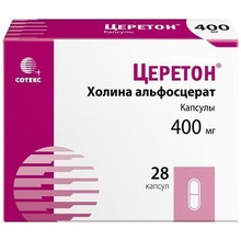 Церетон - ноотропное средство. Центральный холиностимулятор, в составе которого содержится 40,5% метаболически защищенного холина. Метаболическая защита способствует выделению холина в головном мозге. Обеспечивает синтез ацетилхолина и фосфатидилхолина в нейрональных мембранах, улучшает кровоток и усиливает метаболические процессы в центральной нервной системе, активирует ретикулярную формацию. Увеличивает линейную скорость кровотока на стороне, травматического поражения мозга, способствует нормализации пространственно-временных характеристик: спонтанной биоэлектрической активности мозга, регрессу очаговых неврологических симптомов и восстановлению сознания; оказывает положительное влияние на познавательные и поведенческие реакции больных с сосудистыми заболеваниями головного мозга (дисциркуляторной энцефалопатией и остаточными явлениями нарушения мозгового кровообращения). Оказывает профилактическое и корригирующее действие на патогенетические факторы инволюционного психоорганического синдрома, изменяет фосфолипидный состав мембран нейронов: участвует в синтезе фосфатидилхолина (мембранного фосфолипида), улучшает пластичность нейрональных мембран. Стимулирует дозозависимое выделение ацетилхолина в физиологических условиях, улучшает синаптическую передачу, функцию рецепторов. Не оказывает влияния на репродуктивный цикл и не обладает тератогенным, мутагенным действием.