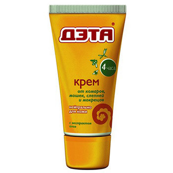 Крем Дэта незаменим для комфортного отдыха на природе. Средство обеспечивает надежную защиту от укусов комаров, мокрецов, мошек и слепней в течении 4-х часов. Благодаря экстракту алоэ вера, крем смягчает и увлажняет кожу. Обладает приятным запахом. Не оставляет ощущения липкости.