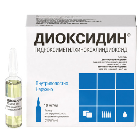 Диоксидин - антибактериальный препарат широкого спектра действия из группы производных хиноксалина, обладает химиотерапевтической активностью при инфекциях, вызванных вульгарным протеем, дизентерийной палочкой, клебсиеллой, синегнойной палочкой, сальмонеллами, стафилококками, стрептококками, патогенными анаэробами (в т.ч. возбудителями газовой гангрены), действует на штаммы бактерий, устойчивых к другим химиопрепаратам, включая антибиотики.
