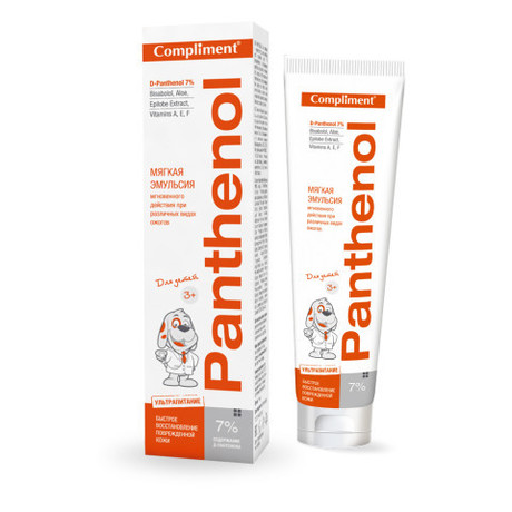 Средство разработано специально для восстановления и питания чувствительной кожи малыша от 3 лет. Рекомендуется при солнечных или термических ожогах с сопровождением болевых ощущений, чувством жжения, нарушением естественного водного баланса кожи. Благодаря высокому содержанию Декспантенола (Д-Пантенола) эмульсия интенсивно увлажняет поврежденные участки кожи и восстанавливает их на клеточном уровне, устраняет обезвоженность.