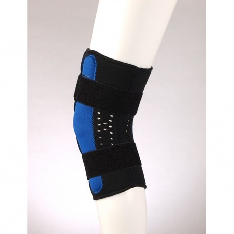 Ортез обладает средней степенью фиксации благодаря боковым металлическим вставкам. Наколенник F 1293 выполнен из неопрена, снабжен надпателлярным отверстием, усилен кольцевидной вставкой, фиксирующей надколенник. Неопрен оказывает микромассажное и согревающее воздействие, при этом не препятствует вентиляции и влагообмену. Полицентрические шарниры обеспечивают анатомически правильную биомеханику сгибания в суставе и защищают сустав от боковых смещений и патологической подвижности. Ортез разъемный, что позволяет применять его при наличии отеков в области коленного сустава.