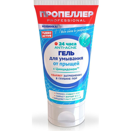Пропеллер Turbo Active Гель для умывания от прыщей с цинцидоном 24 часа 150 мл (Propeller)
