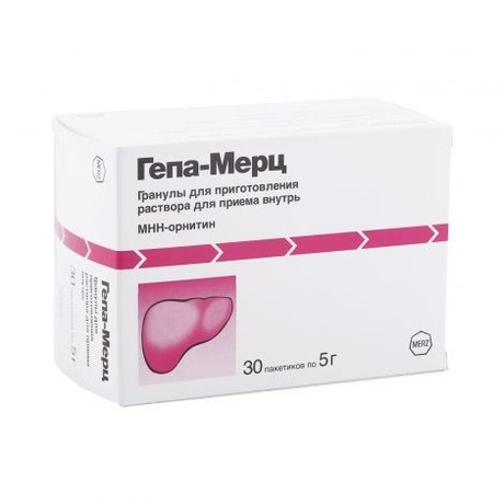 Гепа-Мерц участвует в орнитиновом цикле мочевинообразования Кребса (биосинтез мочевины из аммиака). Способствует выработке инсулина и СТГ. Улучшает дезинтоксикационную функцию печени, понижает повышенный уровень аммиака в плазме. Улучшает белковый обмен при заболеваниях, требующих парентерального питания.