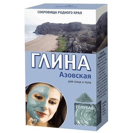 Глина голубая Азовская: разглаживает мелкие морщинки, тонизирует, эластичность кожи, сохранению в ней влаги.