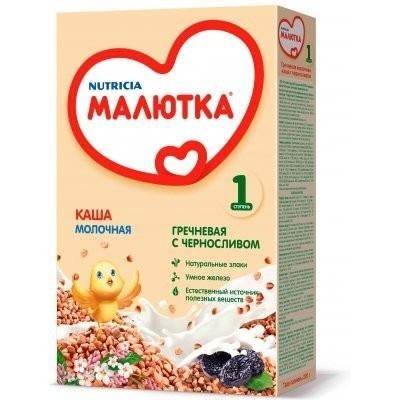 Другие формы «Каша МАЛЮТКА»Молочная гречневая каша Малютка с черносливом вкусная и сытная за счет добавления молока. Гречневая крупа рекомендуется специалистами в качестве первого прикорма, поскольку она не содержит глютена и богата полезными микроэлементами. Витамины группыВ, минералы и ценные аминокислоты, которые содержит гречка, необходимы организму малыша для полноценного роста и развития. Чернослив мягко стимулирует работу кишечника и богат антиоксидантами, помогающими сопротивляться инфекциям. Каша также содержит мальтодекстрин - это углеводный компонент, который обладает пребиотическим эффектом, легко переваривается в желудочно-кишечном тракте, помогает лучше усваивать витамины и микроэлементы и имеет приятный сладковатый вкус.