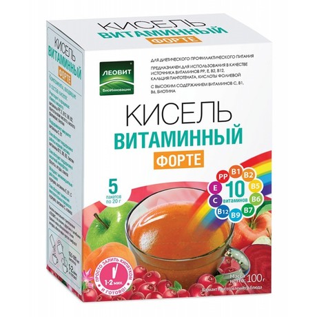 Другие формы «Кисель БиоИнновации витаминный»Кисель витаминный – вкусный напиток для укрепления здоровья. Предназначен для диетического профилактического питания. Является источником витаминов РР, Е, В2, В12, кальция пантотената, кислоты фолиевой. Высокое содержание витаминов С, В1, В6, биотина;