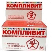Активные вещества: Витамина А (ретинола ацетата)1.135 мг (3300 МЕ), Витамина В 12 (цианокобаламина)12.5 мг, витамина Е (токоферола ацетата) 10 мг, Тиоктовой кислоты (липоевой кислоты) 2 мг, Витамина В 1 (тиамина гидрохлорида) 1 мг, Фосфора (в виде магния гидрофосфата тригидрата) (в виде кальция фосфата дигидрата)60 мг, Витамина В 2 (рибофлавина-мононуклеотида) 1,27 мг, Железа (в виде железа сульфата гептагидрата)5 мг, Витамина В 6 (пиридоксина гидрохлорида) 5 мг, Марганца (в виде марганца сульфата моногидрата)2.50 мг, Витамина С (аскорбиновой кислоты) 50 мг, Меди (в виде меди сульфата пентагидрата)750 мкг, Никотинамида 7.50 мг, Цинка (в виде цинка сульфата гептагидрата)2 мг, Фолиевой кислоты 100 мкг, Магния (в виде магния гидрофосфата тригидрата)16.40 мг, Рутозида (рутина) 25 мг, Кальция (в виде кальция фосфата дигидрата)50.50 мг, Кальция пантотената 5 мг, Кобальта (в виде кобальта сульфата гептагидрата)100 мкг.