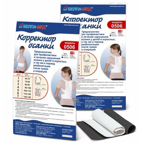 Конструкция представляет собой спинку из плотной эластичной ткани с двумя упругими продольными пластинами, поясную ленту и эластичные лямки. Обеспечивает фиксирующий и разгружающий эффект, сохраняет мобильность и не выключает работу мышц спины. Снабжен ребрами жесткости.