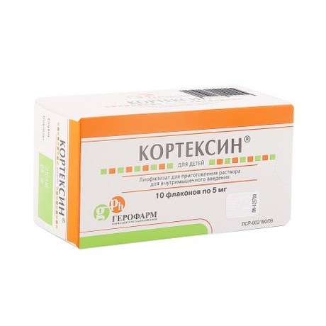 Препарат, улучшающий мозговой метаболизм. Кортексин представляет собой лиофилизат, полученный путем уксуснокислой экстракции из коры головного мозга крупного рогатого скота или свиней, содержащий низкомолекулярные активные нейропептиды, молекулярный вес которых не превышает 10 000 дальтон, достаточный для проникновения через ГЭБ.