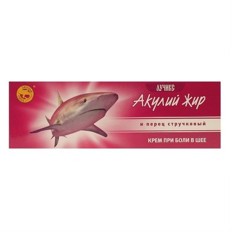 Другие формы «Акулий жир» Крем, обладая местно-раздражающим и согревающим свойствами, расслабляет шейные мышцы, устраняет мышечный спазм, снимает отеки и боль, улучшает структуру шейных позвонков, восстанавливает суставную ткань. Шея приобретает былую подвижность без боли и дискомфорта.