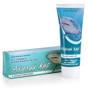 Крем-бальзам акулий жир и бархат амурский является профилактическим и вспомогательным средством при грибковой инфекции, обладает антисептическим, бактерицидным и противоспалительным свойствами. Акулий жир, благодаря наличию в его составе сквалема и скваламина, является антибиотиком и эффективным средством против различных грибковых заболеваний и бактериальных инфекций. Кора бархата амурского традиционно использовалась жителями приморского края как антисептическое, бактерицидное и противовирусное средство при грибке, дерматомикозе, переломах костей, заболеваниях кохи, герпесе.