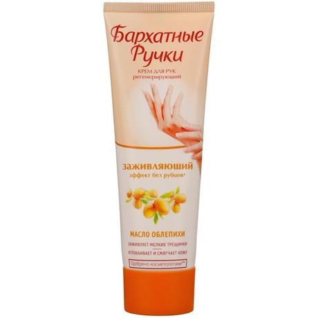 Другие формы «Крем БАРХАТНЫЕ РУЧКИ»Эффект без рубцов. С маслом облепихи. Заживляет мелкие трещинки, успокаивает и смягчает кожу. Крем был разработан специально для восстановления кожи рук после агрессивного воздействия внешней среды. Его формула содержит ценное масло облепихи, известное своими целебными свойствами: заживление мелких трещинок, профилактика восстановления микротрещин, витаминизирующее действие. Активные компоненты в составе формулы крема способствуют правильному процессу регенерации клеток кожи. Не содержит искусственных красителей.