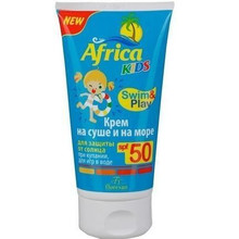 Другие формы «Крем детский»Нежный крем серии «Africa kids» создан специально для сверхчувствительной к солнцу детской кожи при нахождении, как на суше, так и в воде. Комплекс УФ-А и УФ-B фильтров, масло какао-бобов, витамин Е максимально эффективно защищают кожу от вредного воздействия солнечных лучей и свободных радикалов. Водостойкая формула обеспечивает защиту кожи на длительный срок во время пребывания на солнце и после водных процедур.