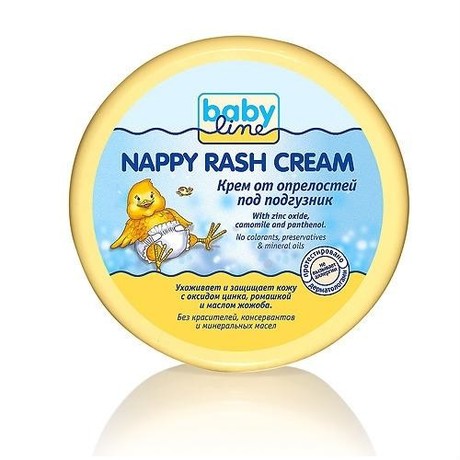 Другие формы «Крем детский»Крем от опрелостей Baby line ухаживает за нежной кожей малыша в области подгузника. Содержит пантенол, оксид цинка и ромашку, которые питают кожу, успокаивают ее и предохраняют от опрелостей.