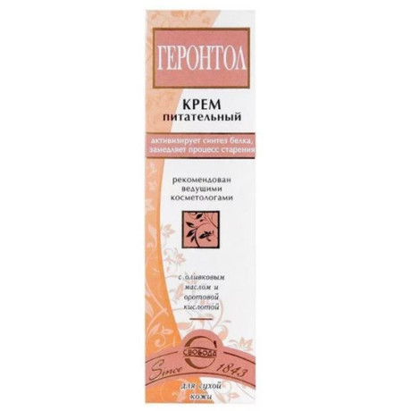 Уникальный активный компонент крема «Геронтол» - оротовая кислота. Оротовая кислота улучшает обменные процессы в коже, нормализует синтез белка и нуклеиновых кислот, нарушенный при увядании кожи, уменьшает мимические морщины, активно противодействуя старению клеток кожи. Оротовая кислота, проникая в кожу, стимулирует восстановление и работу собственной гиалуроновой кислоты. Натуральные активные компоненты - оливковое и растительное масла, воск пчелиный и ланолин восстанавливают липидный барьерный слой кожи, повышают ее эластичность и увлажненность.