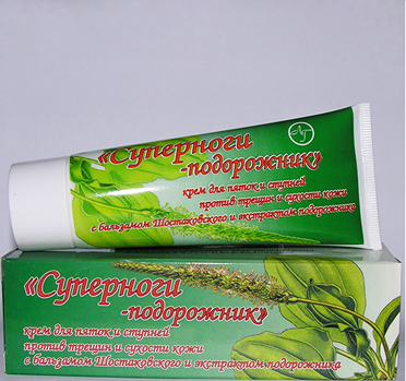 Экстракт подорожника и бальзам Шостаковского способствуют снижению сухости и быстрому исчезновению трещин на пятках.