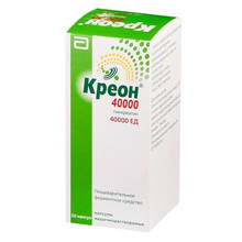 Креон - ферментный препарат, улучшающий процессы пищеварения. Панкреатические ферменты, входящие в состав препарата, облегчают расщепление белков, жиров и углеводов, что приводит к их полной абсорбции в тонкой кишке. Креон® 10000 содержит свиной панкреатин в форме минимикросфер, покрытых кишечнорастворимой (кислотоустойчивой) оболочкой, в желатиновых капсулах. Капсулы быстро растворяются в желудке, высвобождая сотни минимикросфер. Данный принцип разработан с целью тщательного перемешивания минимикросфер с кишечным содержимым, и, в конечном счете, лучшего распределения ферментов после их высвобождения внутри содержимого кишечника. Когда минимикросферы достигают тонкой кишки, кишечнорастворимая оболочка быстро разрушается (при pH > 5,5), происходит высвобождение ферментов с липолитической, амилолитической и протеолитической активностью, что приводит к расщеплению жиров, углеводов и белков. Полученные в результате расщепления вещества затем либо абсорбируются напрямую, либо подвергаются дальнейшему гидролизу кишечными ферментами.