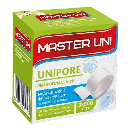 Лейкопластырь медицинский фиксирующий на нетканной основе MASTER UNI UNIPORT предназначен для фиксации различного вида перевязочных средств, компрессов, тампонов и крепления на коже вспомогательных медецинских устройств. Отлично фиксируется на коже, позволяя ей свободно дышать, изготовлен из микропористой целлюлозы. Рекомендован для людей с особо чувствительной кожей, безболезненное удаление. При использовании не нужны ножницы, легко отрывается руками до нужного размера.