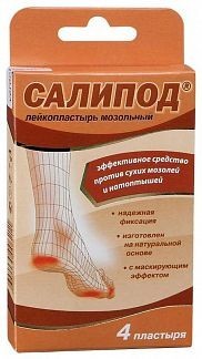 Салипод - это полоска ткани со слоем мозольной массы, приклеенная к липкой основе - лейкопластырю, прямоугольной, фигурной или круглой формы или полоска ткани со слоем мозольной массы прямоугольной, фигурной или круглой формы в комплекте с лейкопластырем или без него с защитным покрытием.