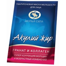 Другие формы «Акулий жир»Интенсивная омолаживающая маска содержит уникальный комплекс действующих веществ и витаминов. Гранат - один из наиболее мощных естественных борцов с морщинами. Гранат замедляет процесс старения кожи, уменьшает количество морщин. Гиалуроновая кислота удерживает влагу, способствует устранению морщин, и питанию кожи. Активизируя клетки дермы, маска стимулирует синтез «молодого» коллагена, повышая упругость и эластичность кожи, разглаживает морщины, увлажняет и тонизирует кожу, укрепляет ее защитный барьер. После применения маски Ваша кожа будет выглядеть молодой и здоровой.