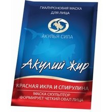 Другие формы «Акулий жир»Протеины, аминокислоты, минералы и витамины, содержащиеся в красной икре, оказывают мощное укрепляющее, моделирующее и подтягивающее действие. Сине-зеленая водоросль спирулина насыщает кожу широким набором минералов, солей и витаминов, повышает эластичность и гибкость кожи. Спирулина питает, укрепляет и подтягивает кожу лица, борется с появлением морщинок, улучшает цвет лица. Гиалуроновая кислота удерживает влагу, способствует устранению морщин, и питанию кожи. Маска осуществляет мощный лифтинг, устраняет провисание кожи, расправляет носогубные складки, уменьшает и разглаживает морщины, очерчивает овал лица, корректирует линию подбородка.