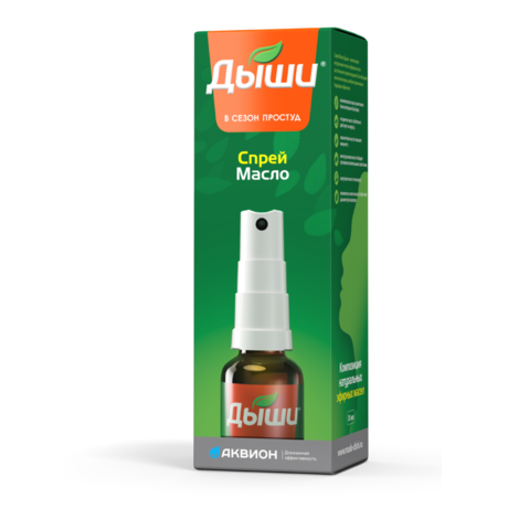 Спрей Масло Дыши – это композиция натуральных эфирных масел, обладающих антисептическими, противовоспалительными и тонизирующими свойствами. Пары эфирных масел обеззараживают вдыхаемый воздух и тем самым препятствуют распространению болезнетворных вирусов и бактерий. Помните, масло Дыши эффективно только на ранних стадиях простуды и гриппа. Если болезнь в разгаре, не стоит ожидать от него чуда. Но даже в такой ситуации пользоваться маслом Дыши необходимо – для облегчения симптомов, а также для профилактики простудных заболеваний у остальных членов семьи.