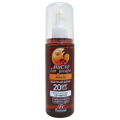 Другие формы «Масло натуральное ФЛОРЕСАН»Масло для загара "Малибу", быстрый загар, SPF 20, масло авокадо и Бета-кератин, предупреждает старение кожи. Витаминизированное