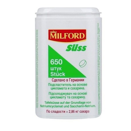 Подсластитель (заменитель сахара) МИЛФОРД Зюсс используется для подслащивания напитков с целью снижения их калорийности, а также в домашней кулинарии. Рекомендован при питании с пониженным содержанием калорий. По рекомендации врача может быть использован при сахарном диабете.