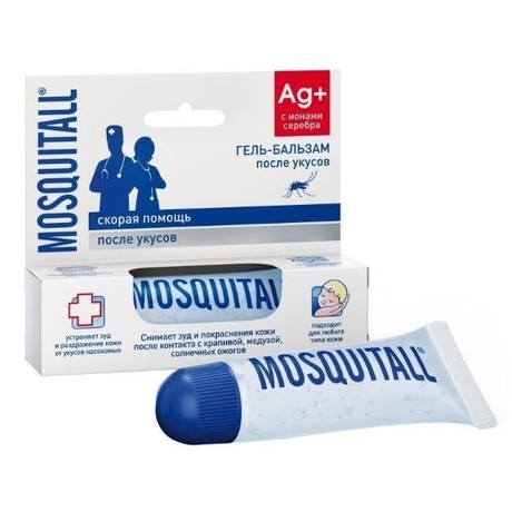 Другие формы «Москитол гель-бальзам после укусов»Средство быстро и эффективно снимает ощущение дискомфорта, зуд и раздражение. Гель-бальзам содержит антибактериальный комплекс с ионами серебра, обладает противовоспалительным и регенерирующим действием.