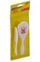 Расчски и щтки Курносики изготавливаются из прочного безопасного материала и проходят тщательный контроль качества. Зубчики расчски закруглены для дополнительной безопасности. Щтка имеет специальную мягкую щетину, которая не раздражает нежную кожу ребенка и обеспечивает комфорт. Набор предназначен для расчесывания волос, а также удаления сальных корочек с головы малыша. Подходит для детей с 4-х месяцев.