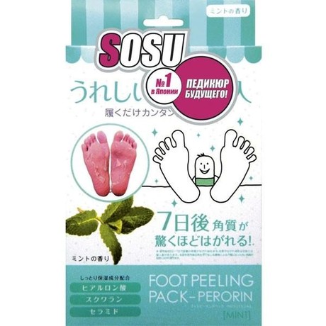 Другие формы «Носки SOSU д/педикюр»Педикюрные носочки “SOSU” – «педикюр будущего». Представляет собой носочки с особым высокотехнологичным составом, который помогает избавиться от натоптышей, ороговений, мозолей и других дефектов кожи стоп. Применение носочков ведет к отшелушиванию и естественному отторжению мертвых слоев кожи.