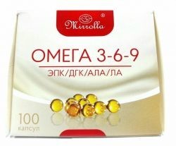 Масляный комплекс омега 3-6-9 (масло льняное нерафинированное, жир морских рыб, масло кукурузное нерафинированное), оболочка капсулы (желатин пищевой, Е422, Е330, смесь токоферолов, вода очищенная питьевая).
