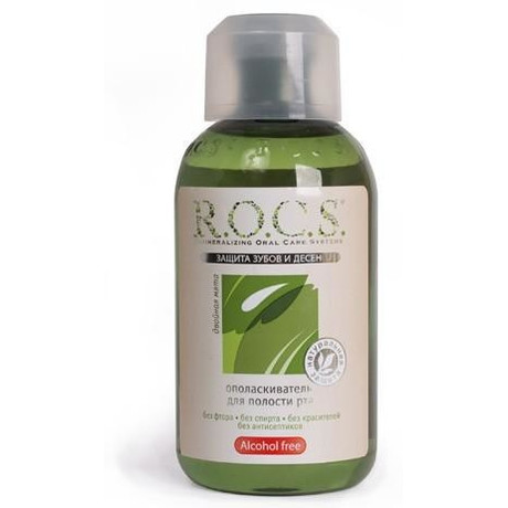 Ополаскиватель ROCS - без фтора, без спирта, без лаурилсульфата натрия, без красителей и антисептиков.