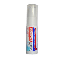 Распылить освежитель в течение 1-2 секунд в ротовой полости. Не глотать!