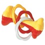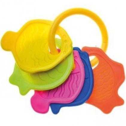 Игрушка-погремушка "Ловись, рыбка" выполнена из безопасного пластика и представляет собой кольцо с пятью рельефными элементами в виде рыбок разных цветов.