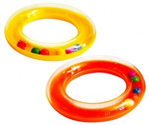 В прозрачном колечке находятся цветные шарики. Развивает слух, моторику концентрацию внимания. Удобна для ручек малыша.